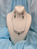 کد S3... وزن : 14گرم و 270سوت..نیم ست با نگین سبز زمردی شیشه ای..نقره آبکاری شده...نگین مخراج کاری شده...ارسال با فاکتور.. دستبند مناسب برای دور دست 17 تا 20 سانت..ارسال با پست